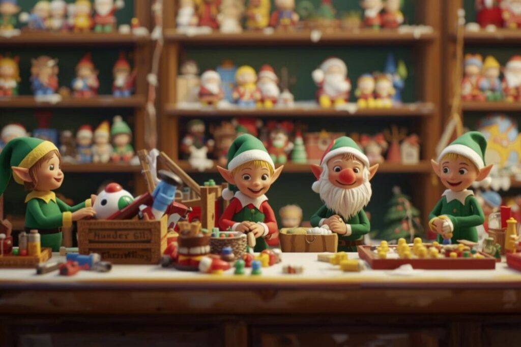 (サンタのエルフたちはおもちゃ作りに大忙し)