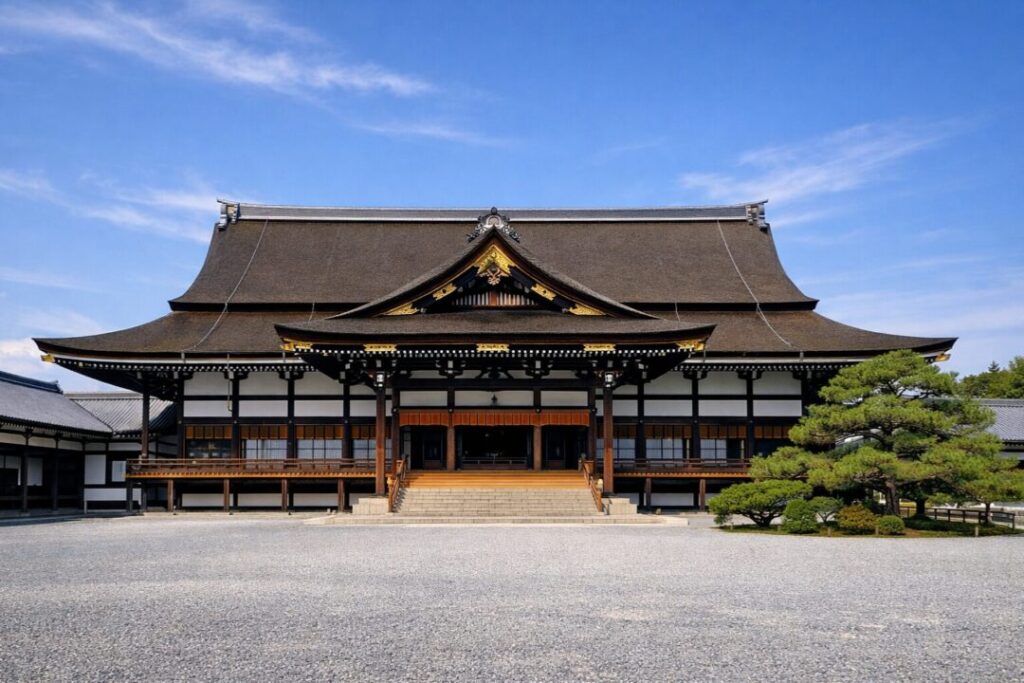 京都御所は、昔の天皇が住んでいた場所で、今はゆっくり散策もできる場所です。